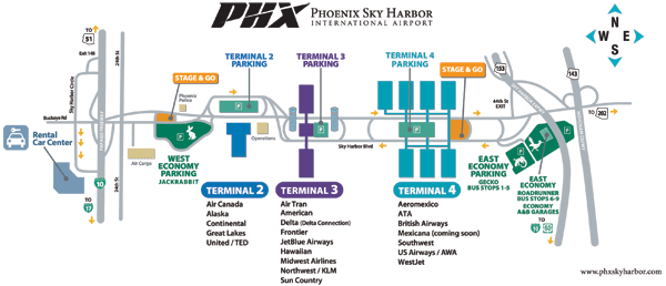 Адрес аэропорта: 3400 East Sky Harbor Boulevard Phoenix, AZ 85034, США