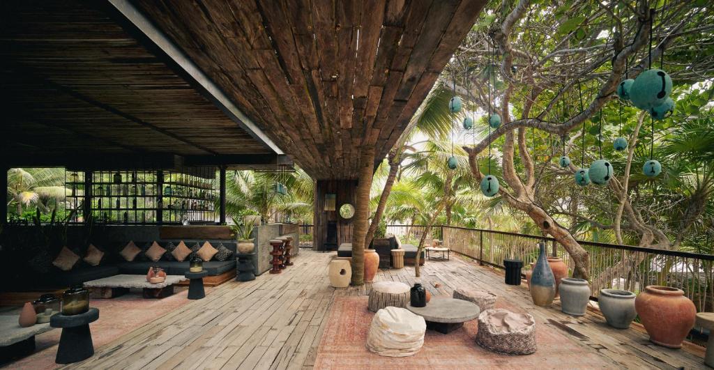 Отель только для взрослых, 16+ Один из самых известных отелей тренда «бохо-люкс» в Тулуме, чья концепция построена на уникальной атмосфере, дизайне и «отрыве от цивилизации». Отель сосредоточен на Wellness-программах, йоге, церемониях и спа-ритуалах. Уникальный, инстаграмный дизайн, органично вписанный в джунгли. Отель принадлежит Be Hotel Group (или Be Group), которая была сооснована архитектурным бюро Sas Arquitectos, разработавшим его уникальный дизайн. Предлагает одни из самых больших по площади номеров в Тулуме. Многие номера (Tierra Suite, Jungle Suite) оснащены частными бассейнами или джакузи на террасе. В интерьере преобладают натуральные материалы (бетон, дерево). На территории работают известный холистический Yâ´aan Spa, предлагающий ритуалы, основанные на майянских традициях, три ресторана и два бара. Ресторан Ocúmare регулярно привлекает внимание критиков. Он предлагает сложные авторские блюда, сочетающие традиционные мексиканские ингредиенты с современными техниками.