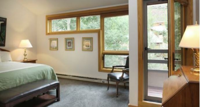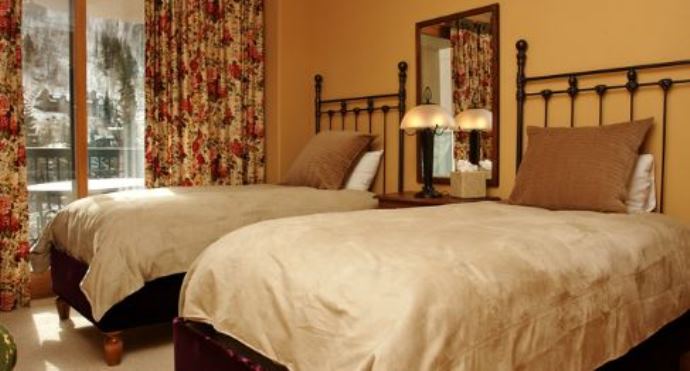 Кондо расположены в тихой излучине реки Gore Creek, в 5 минутах ходьбы от главного корпуса (частный теннисный корт, круглогодичный бассейн с подогревом и джакузи. Кондиционеров нет). Просторные современные апартаменты c индивидуальным декором.Две спальни спальня, комната отдыха со спальным местом, отдельная гостиная с камином, полностью оборудованной кухней, обеденной зоной. Две ванных комнаты. Площадь: