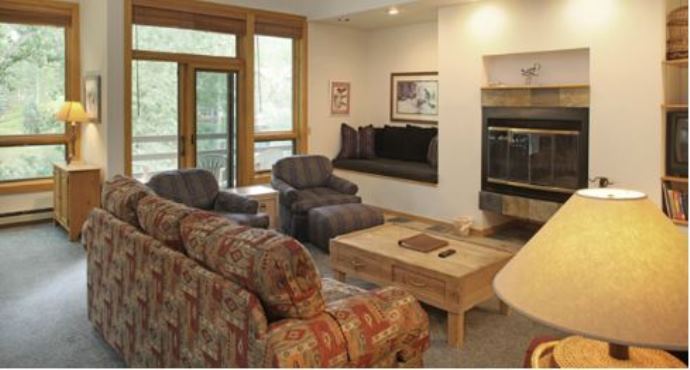 Кондо расположены в тихой излучине реки Gore Creek, в 5 минутах ходьбы от главного корпуса (частный теннисный корт, круглогодичный бассейн с подогревом и джакузи. Кондиционеров нет). Просторные красиво оформленные современные апартаменты. Две спальни спальня, отдельная гостиная с камином, полностью оборудованной кухней, обеденной зоной. Две ванных комнаты. Площадь: