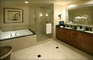 Элегантный номер в теплых тонах. В номере: зона отдыха с мягкой мебелью и столиком, небольшая кухня, просторная ванная комната, отделанная мрамором, с двойной раковиной, ванной и отдельной душевой кабиной. Площадь: