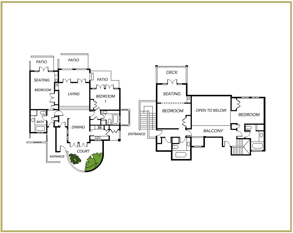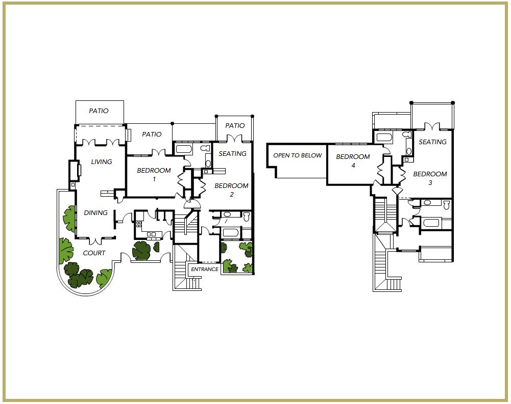 Недавно отреставрированные двухэтажные виллы, декор создан дизайнером интерьеров Lori Rapport. Сочетание в оформлении современного и классического стиля. Сделанная на заказ мебель. В номере: четыре спальни, гостиная с мягкой мебелью и камином (в некоторых номерах), столовая, полностью оборудованная кухня. Четыре ванные комнаты с ванной и отдельной душевой кабиной. Небольшой внутренний дворик. Площадь: