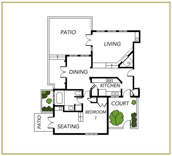 Недавно отреставрированные виллы, декор создан дизайнером интерьеров Lori Rapport. Сочетание в оформлении современного и классического стиля. Сделанная на заказ мебель. В номере: две спальни, гостиная с мягкой мебелью, столовая, полностью оборудованная кухня. Две ванные комнаты с ванной и отдельной душевой кабиной. Небольшой внутренний дворик. Площадь: