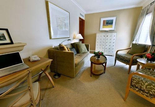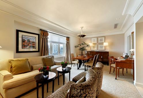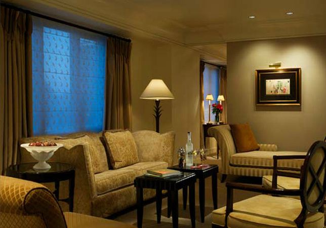 Двухкомнатный номер с кроватью King-size с постельным бельем Frette, небольшим диванчиком в спальне. В просторной гостиной установлена комфортабельная мебель: раскладной диван, кресла вокруг кофейного столика, рабочий стол, обеденный стол на 6 человек. Ванная комната, отделанная натуральным мрамором. Площадь: