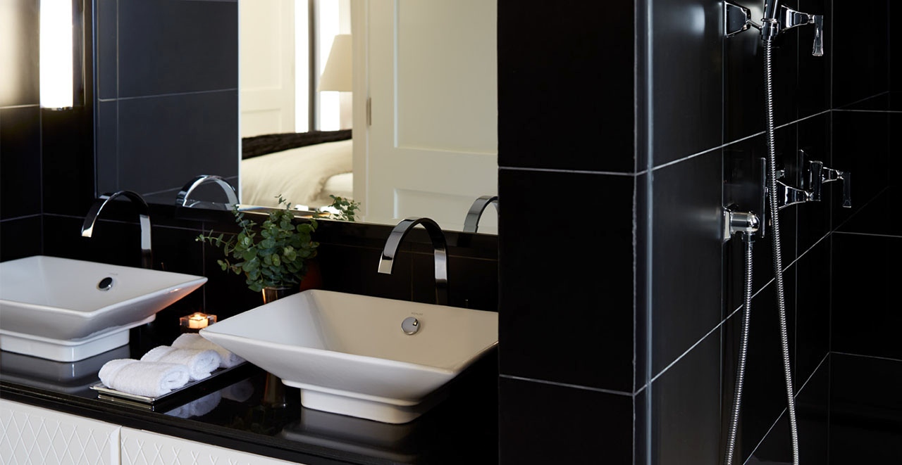 Номера расположены в центральной части главного здания. Небольшая зона отдыха с креслом, стол со стульями. Ванная комната отделана мрамором, две раковины, ванна и отдельная стеклянная душевая кабина с тропическим душем.